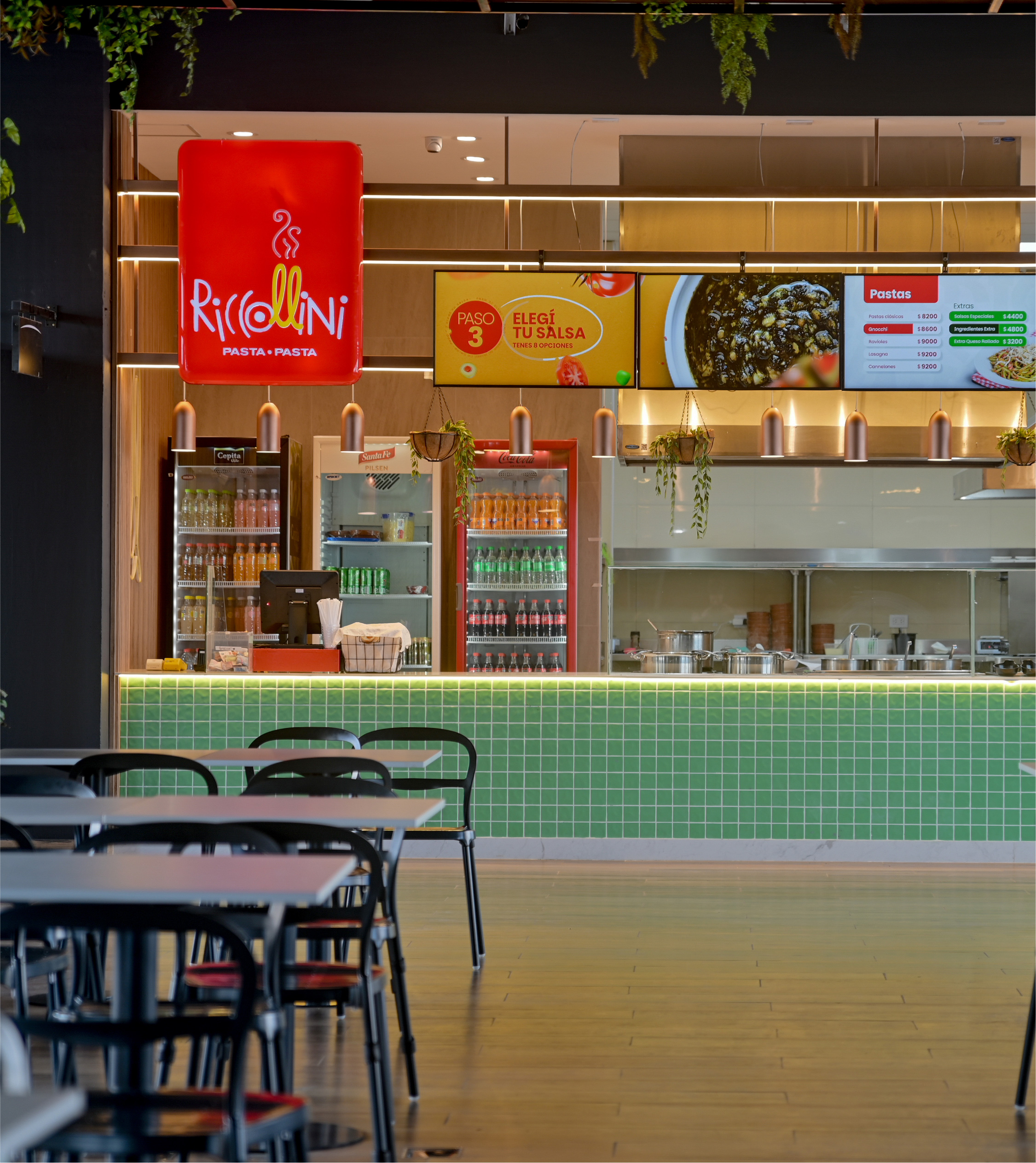 Adaptamos la identidad estética de la marca a las características específicas de cada nueva sucursal, ajustando paleta cromática, materiales y lenguaje espacial a las dimensiones, condiciones técnicas y recursos disponibles en cada locación. También definimos la disposición del mobiliario, equilibrando los requerimientos operativos con las posibilidades de cada local para optimizar circulación y funcionalidad.